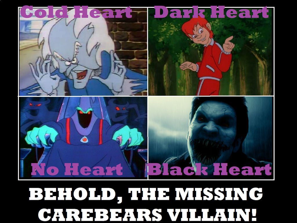 Dark Heart is the main antagonist of the second Care Bears movie and arguably the Care Bears most dangerous adversary. Dark Heart Voiced by Hadley Kay is the main villain in Care Bears Movie 2. Villains from over 35 years of the Care Bears history have taken over our channel for October and No Heart from The Care Bears Family is the first to show o.